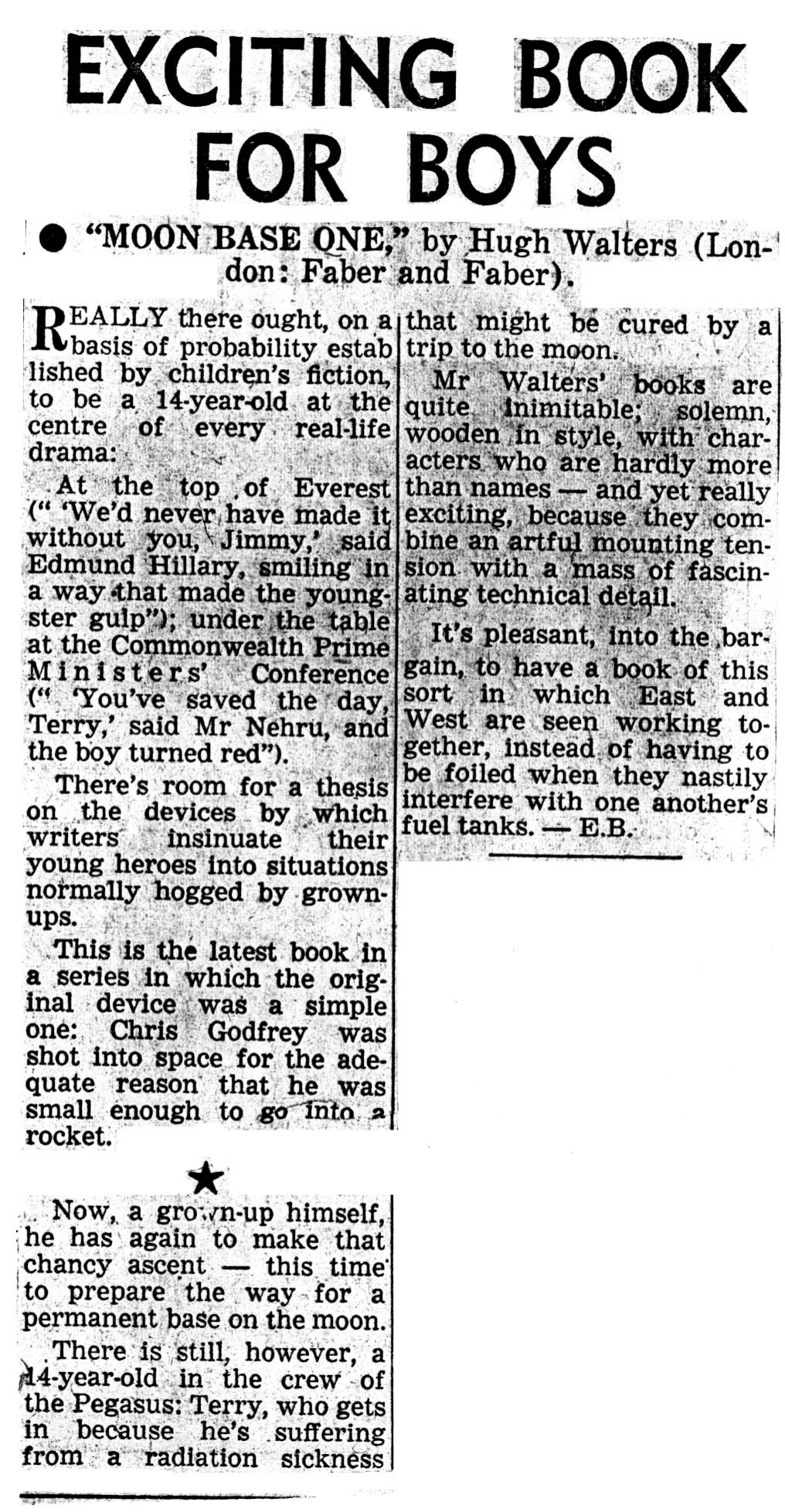 * "MOON BASE ONE," by Hugh Walters (Lon-